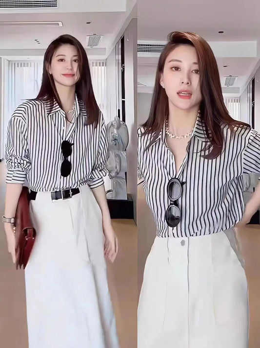 Regular price $30.98 USDRegular priceUnit price / per$0.00 USDSale price $30.98 USDStriped Long Sleeve Womens Blouse Casual Office Elegance