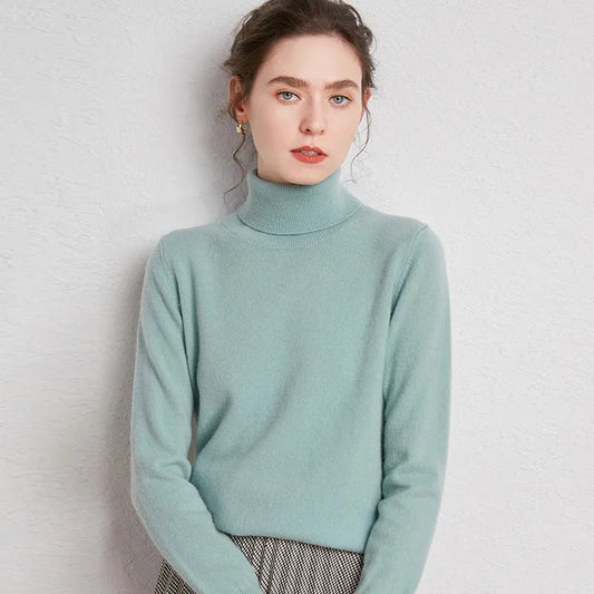 Womens Pure Wool Turtleneck Plus Size Knitted Sweaters