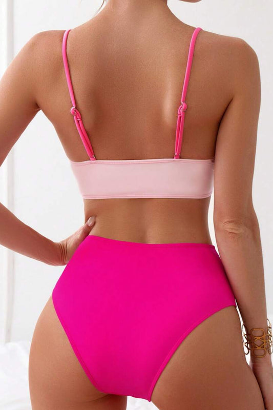Black & White Colorblock High Waist Bikini Set | Trendy Swimwear 2025