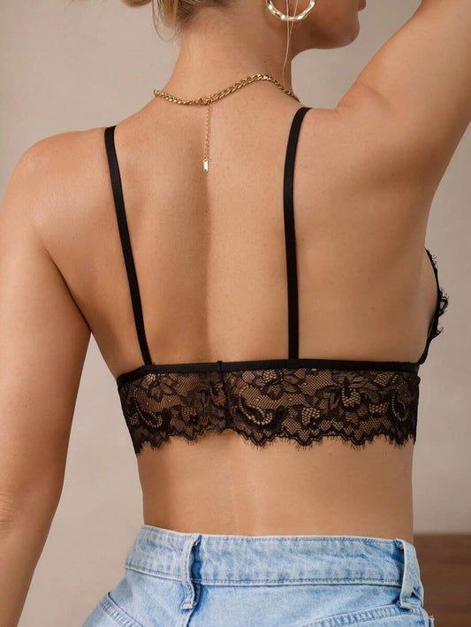 Steel-Rimless Lace Bralette – V-Neck Elegance & All-Day Comfort