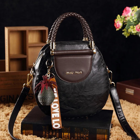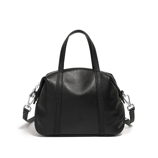 Cowhide Leather Bowling Bag – Luxury Shoulder & Crossbody Handbag