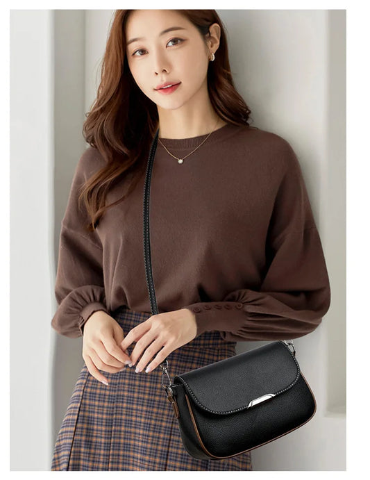 Sleek PU Leather Handbag Magnetic Buckle One-Shoulder Crossbody