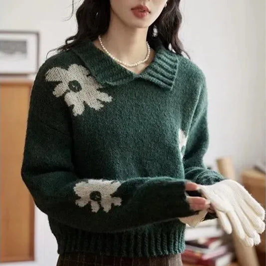 Women's Office Lady Loose-Fitting Polo Collar Knit Top