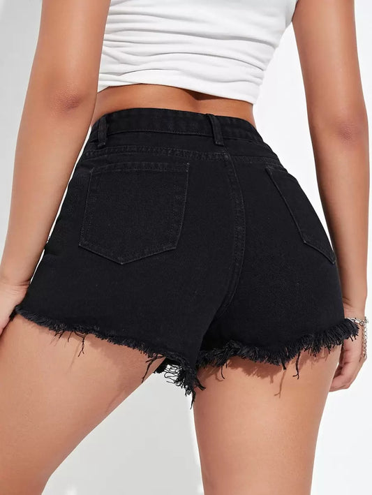 Black Distressed Denim Shorts Women – Edgy Streetwear Summer Outfit