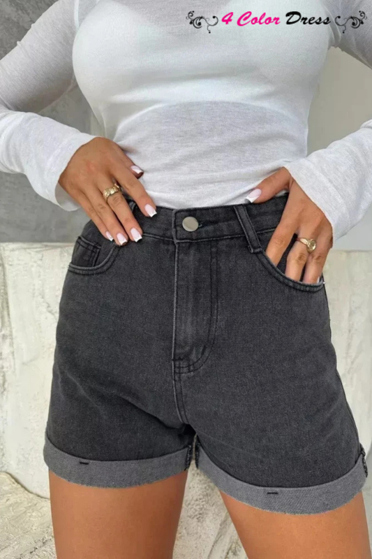 High Waisted Grey Denim Shorts Women – Casual Streetwear Summer Outfit