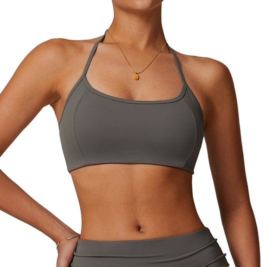 Sexy Seamless Sports Bra For Women Halter Neck Open Back Medium Support Yoga Crop Top Underwear