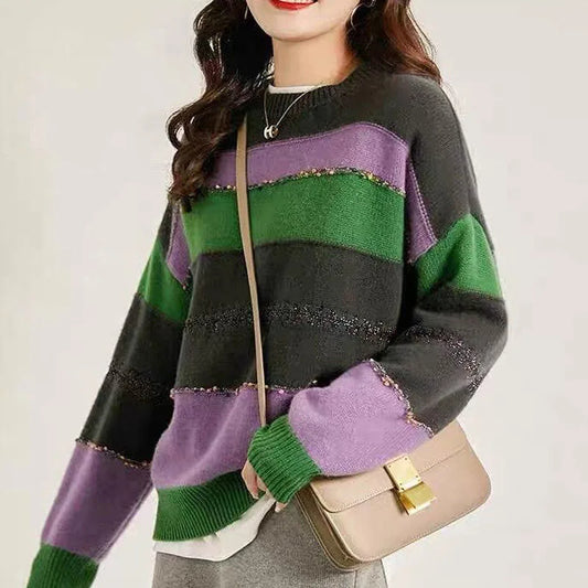 Vendor:4ColordressRegular price $34.63 USDRegular priceUnit price / perSale price $34.63 USDWomen's Striped Loose-Fitting High Street Sweater