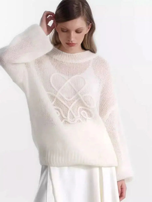 Regular price $28.86 USDRegular priceUnit price / perSale price $28.86 USDWomen's Heart Pattern Hollow Out Knit Sweater