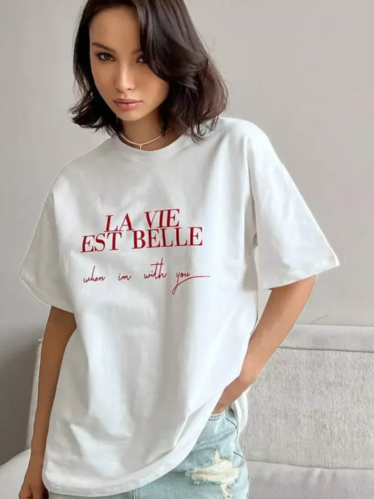 LA VIE EST BELLE Graphic Tee – Women’s Korean Style Cotton T-Shirt, Casual Summer Outfit