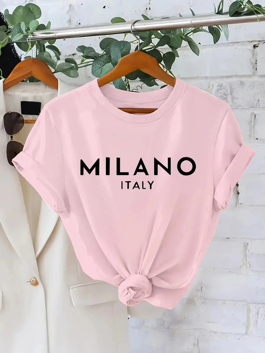 Women’s Milano Italy Letter Print Tee – Casual Summer T-Shirt, Everyday Street Style Outfit