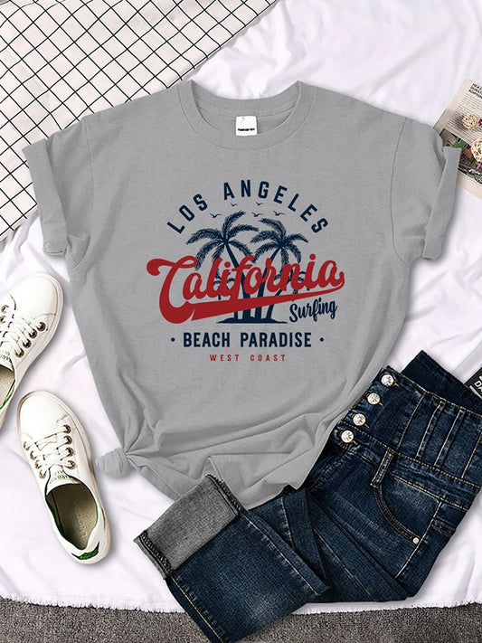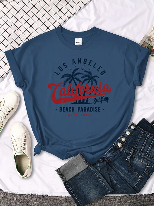 California Beach Paradise Graphic Tee – Women’s Summer T-Shirt, Casual Street Style Outfit