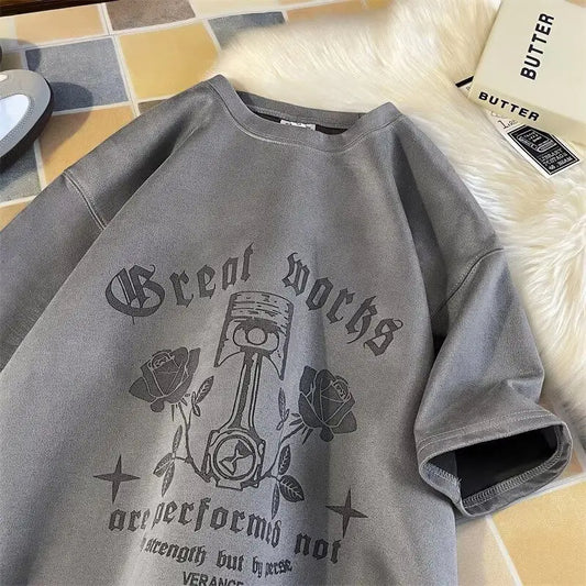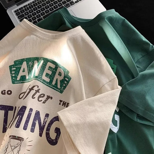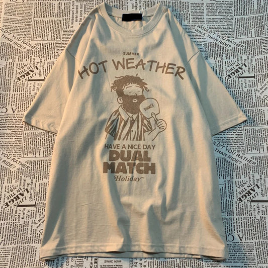 Japan Street Style Cartoon Print Tee – Men’s Casual Cotton T-Shirt, Summer Streetwear Outfit