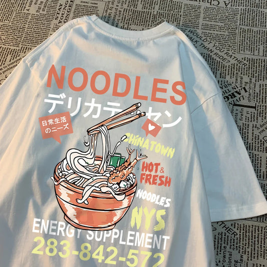 Anime Noodles Graphic Couple T-Shirts – Unisex Cotton Tee, Street Style Outfit