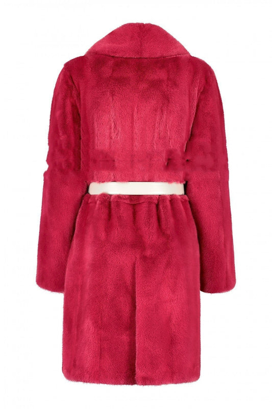 Wine Red Faux Fur Marten Coat – Elegant Winter Overcoat for Women