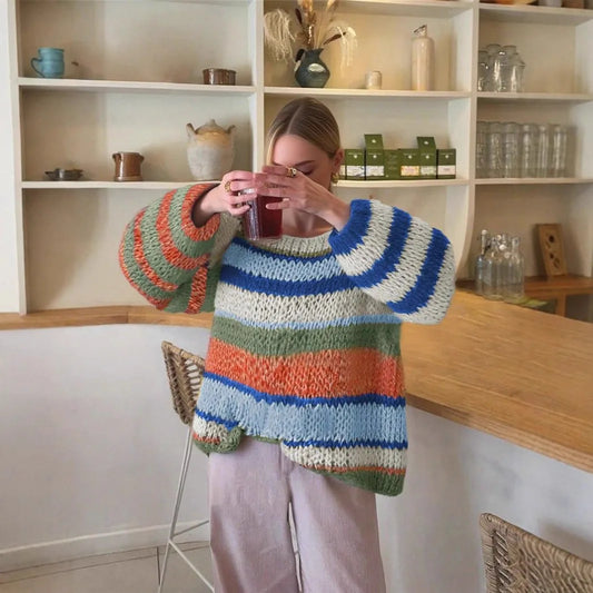 New Autumn Winter Fashion Chic Striped Sweaters For Women