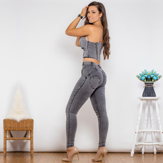 Sculpting Denim Two-Piece Outfit Set | Sleek Style 2025 Aesthetic