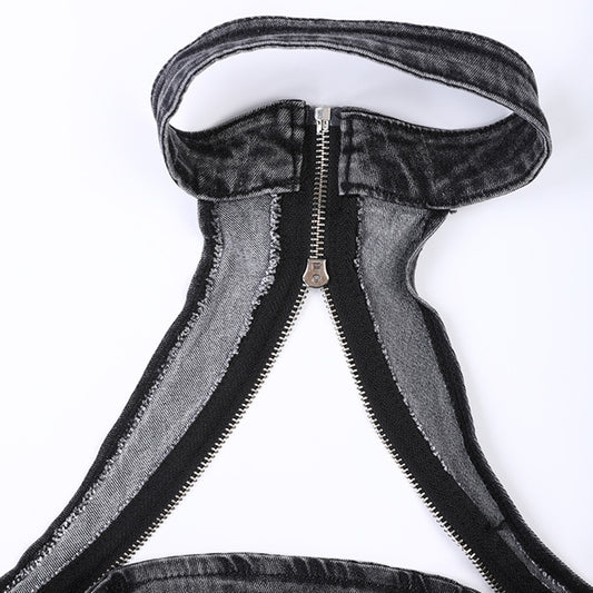 Backless Denim Two-Piece Outfit Set | Edgy Style 2025 Aesthetic