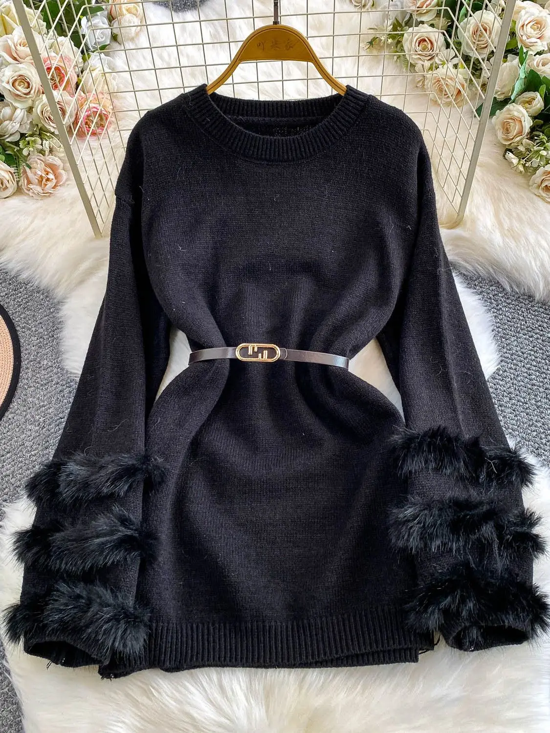 Crafted for the modern woman, this pullover sweater combines everyday comfort with sophisticated style. The standout fluffy fur sleeves add an elegant textural contrast to the classic knit construction, while the loose-fitting silhouette ensures unrestricted movement. Featuring a timeless O-neck collar and solid design, this piece transitions seamlessly from casual outings to relaxed gatherings. The medium-weight polyester blend provides gentle stretch and durability, making it an ideal layering essential for autumn and winter wardrobes. Perfect for those seeking understated luxury in their everyday wear.