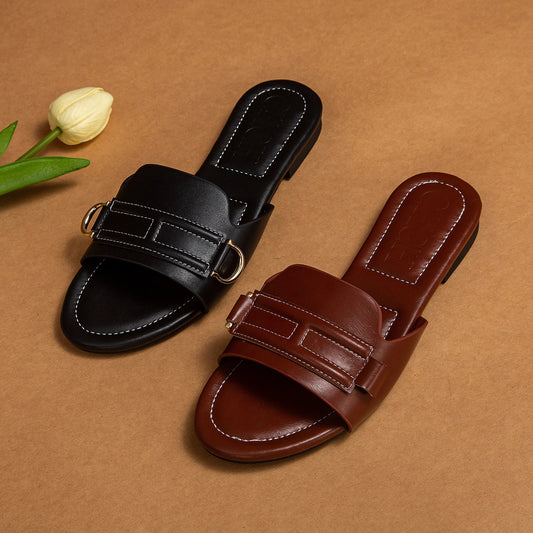 Women’s PU Slide Slippers – Minimalist Indoor Summer Flats