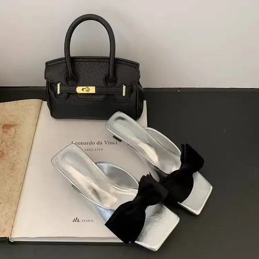 Women’s Korean Style Low Heel Bowknot Slippers – PU Summer Sandals