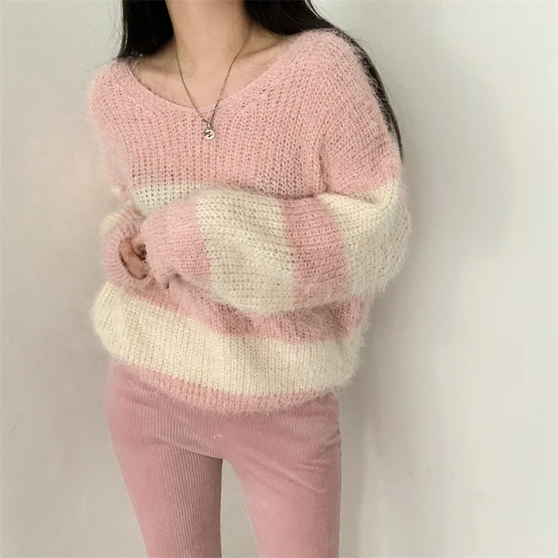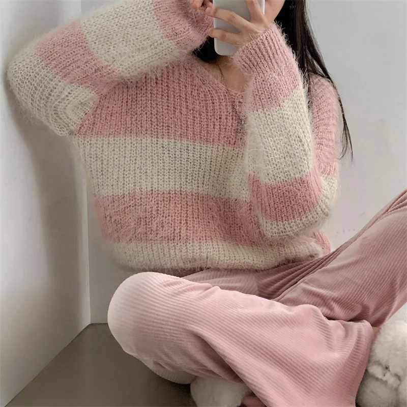 Cool Elegant Striped Loose Style Women Winter Sweaters
