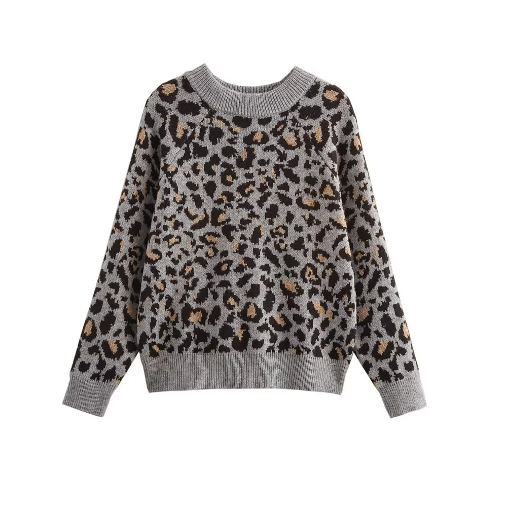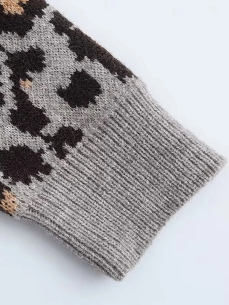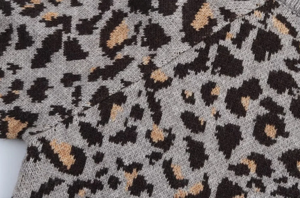 V Leopard Design Long Sleeve Women Winter Pullovers