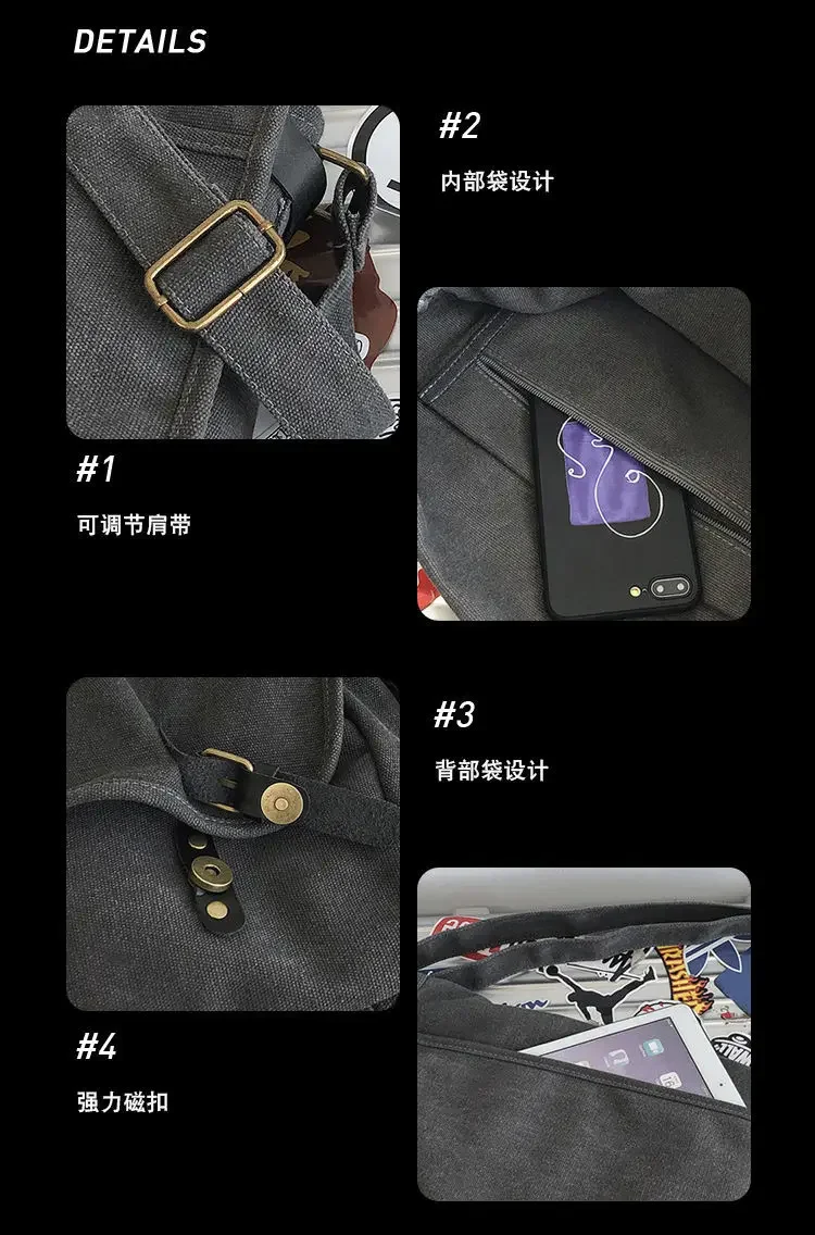 Japanese Canvas Cross Body Bag For Men Women Simple Wash Canvas Handbag Large Capacity Arts Students Satchel