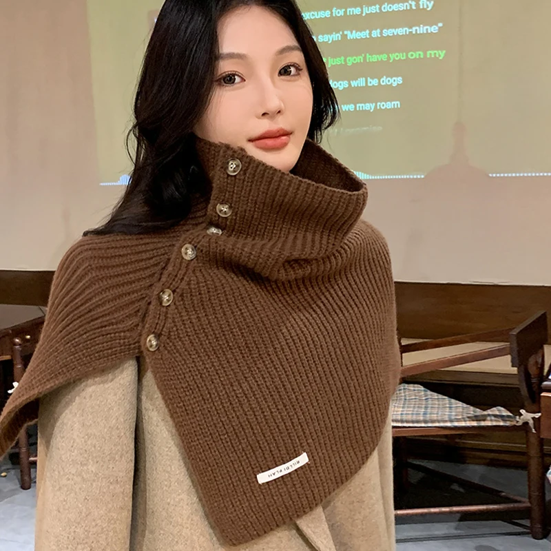 Scarf Collar Button Decoration Autumn Winter Sweater For Women