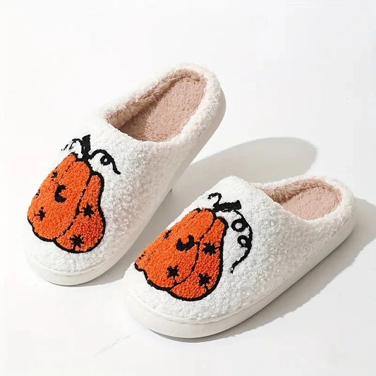 Women’s Pumpkin Print Indoor Slippers – Cozy Halloween House Shoes
