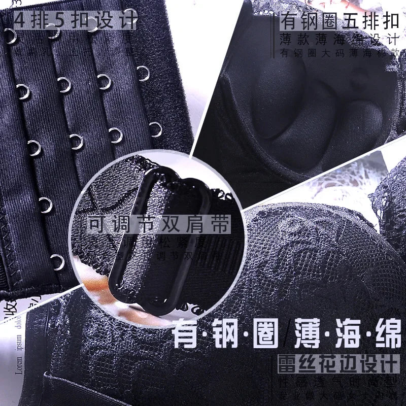 Engineered for curves, this plus-size push-up bra combines sophisticated lace detailing with advanced support technology. The 0.5mm aerospace-grade underwire adapts to your body's contours, delivering natural lift and enhanced cleavage while the breathable thin-cup design maintains a seamless silhouette under fitted clothing. Crafted from a luxurious spandex-nylon blend, the bra features five adjustable hook-and-eye closures and wide side wings for secure, all-day comfort without slipping. Available in extended sizes 34-50 with full DD+ coverage, it transitions effortlessly from everyday wear to special occasions. The soft lace construction resists irritation while providing the confidence and support that discerning customers demand from premium lingerie.