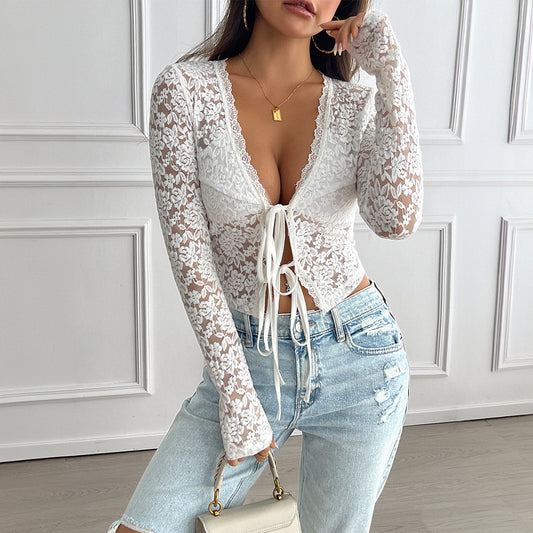 Regular price From Dhs. 126.00 AEDRegular priceUnit price / perSale price From Dhs. 126.00 AEDV Neck Hollow Out Lace Up Blouse