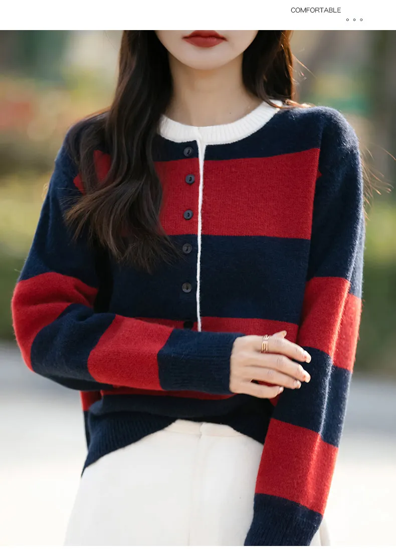 Spring Knit O-neck Cardigan Sweater Women Long Sleeve Tops Button Female Autumn Striped Loose Fashion Basics Sweater Pullover Jumper
