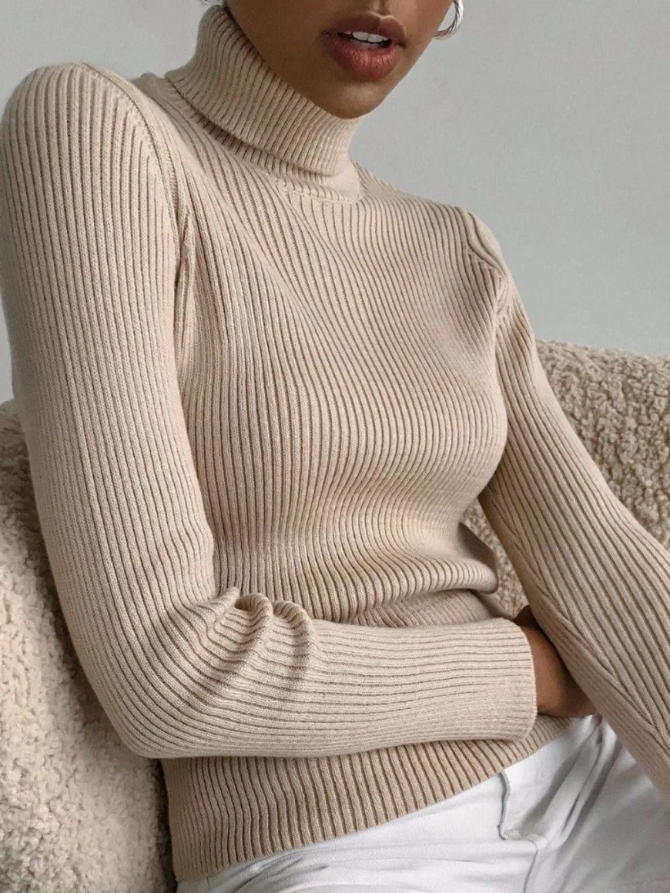 2025 Autumn Winter Women S Thick Ribbed Knitted Turtleneck Sweater Slim Fit Long Sleeve Pullover Soft Warm
