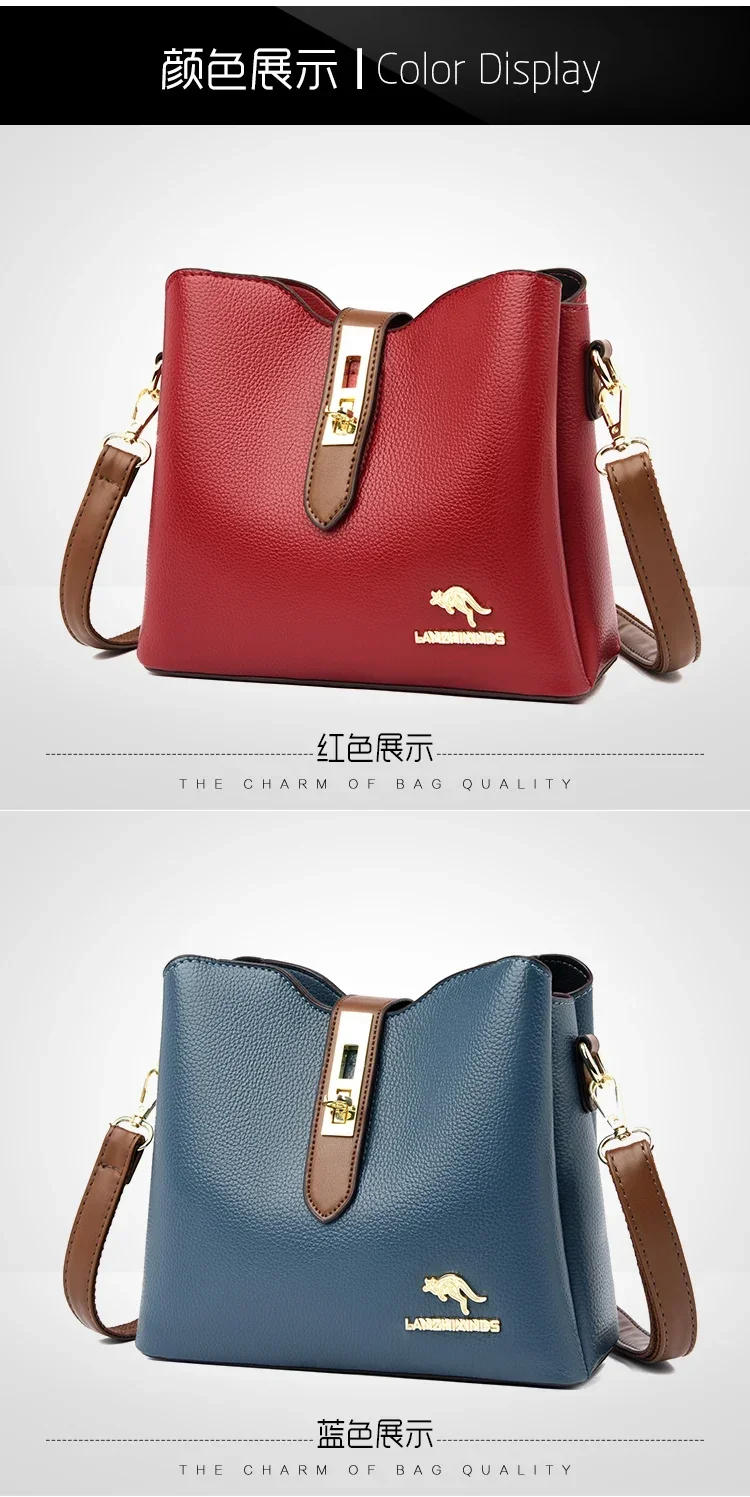 2025 New Pu Large Capacity Womens Tote Bag Fashion Contrast Color Single Shoulder Crossbody Handbag Stylish Lady Bag