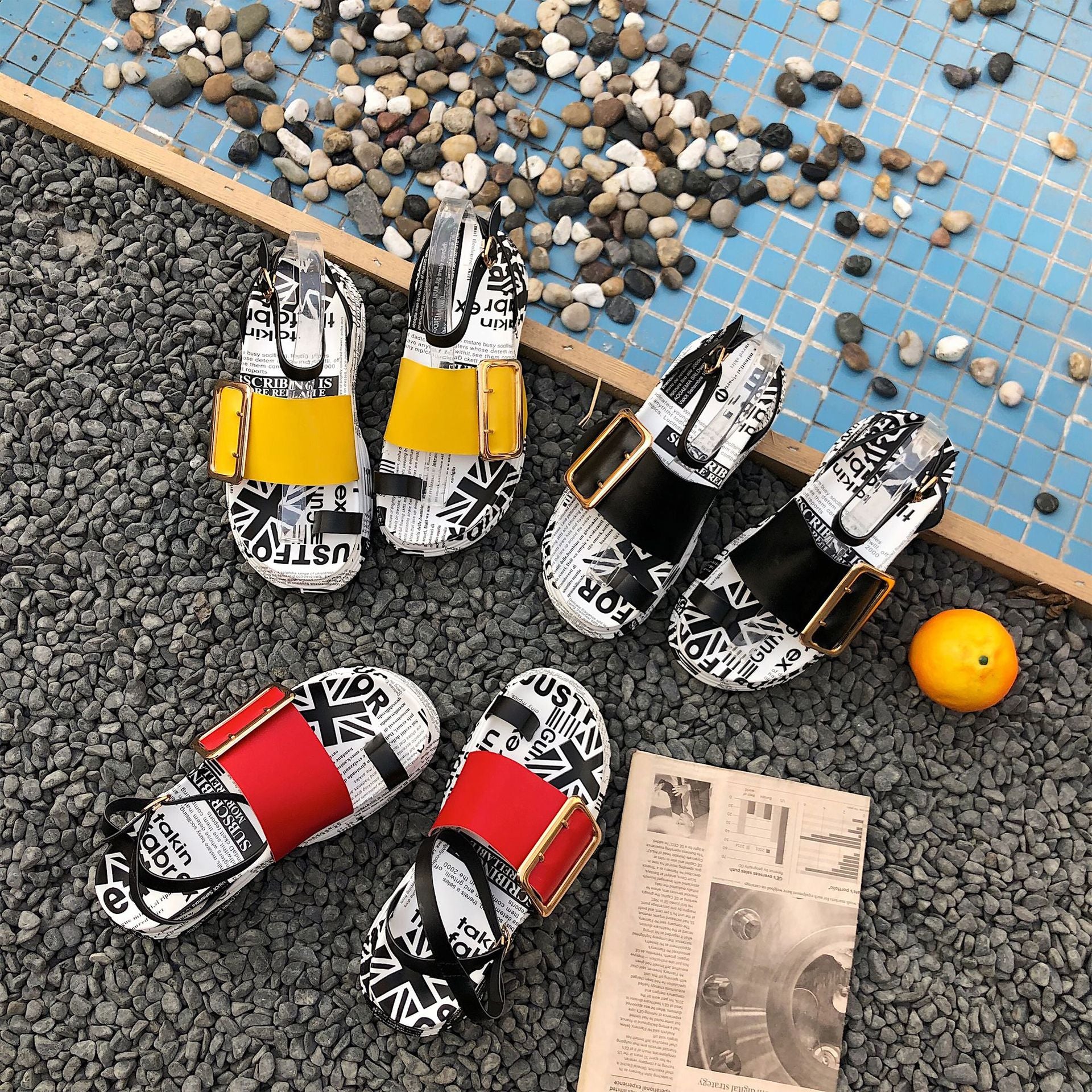 Step into summer style with these versatile wide ankle buckle sandals designed for all-day comfort. Featuring a supportive sponge cake heel and durable rubber sole, these sandals combine functionality with contemporary flair. The signature buckle detail and bold graffiti accents add personality to your warm-weather wardrobe. Available in striking yellow, red, and black colorways, they transition seamlessly from casual outings to relaxed gatherings. With sizes 35-39 and corresponding foot length measurements, finding your perfect fit is straightforward. The wide ankle design accommodates various foot shapes while the secure buckle closure ensures stability. Ideal for those seeking a reliable sandal that doesn't compromise on style or wearability.