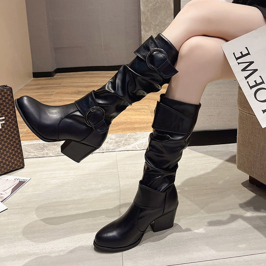 Regular price From ¥12,800 JPYRegular priceUnit price / perSale price From ¥12,800 JPYNew Thick High Heels Women Mid Calf Boots