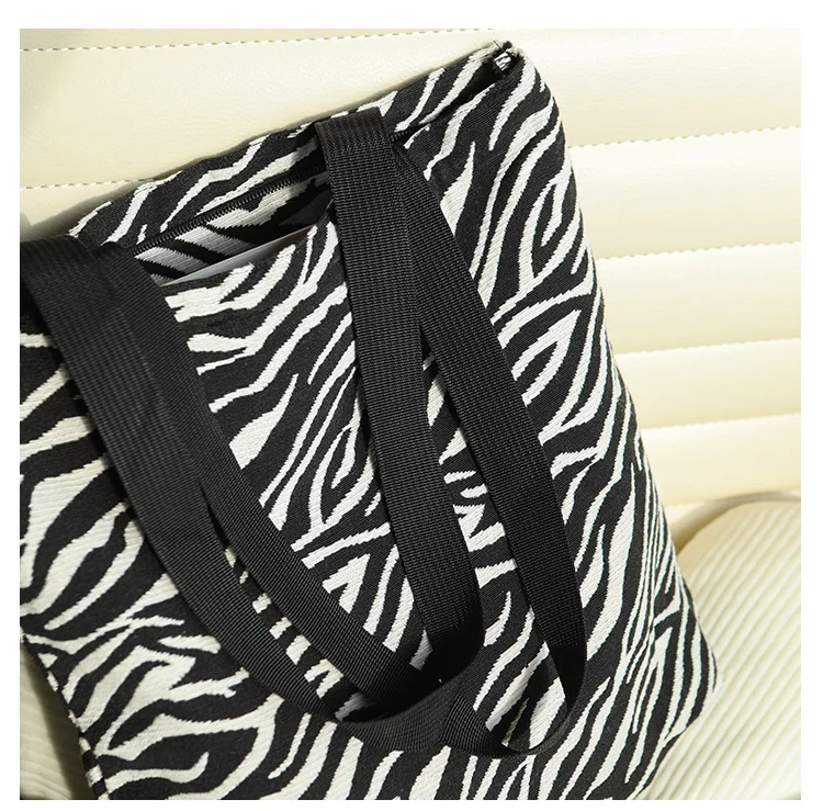 Crafted from durable polyester canvas, this unisex tote combines practical functionality with striking zebra striping. The spacious design accommodates daily essentials, while the secure zipper closure and dual handles ensure reliable carrying comfort. An interior cell phone pocket keeps your device accessible and protected. Versatile enough for work, travel, or casual outings, this shoulder bag transitions seamlessly across occasions with its timeless striped aesthetic and soft, flexible construction.