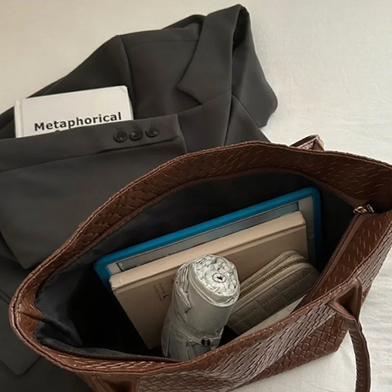 Made from high-quality materials, this tote bag is built to withstand the rigors of daily use. The woven texture not only looks great but also adds to the bag's durability, ensuring that it can accompany you for years to come.