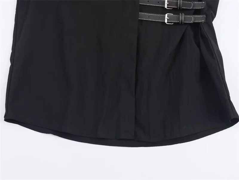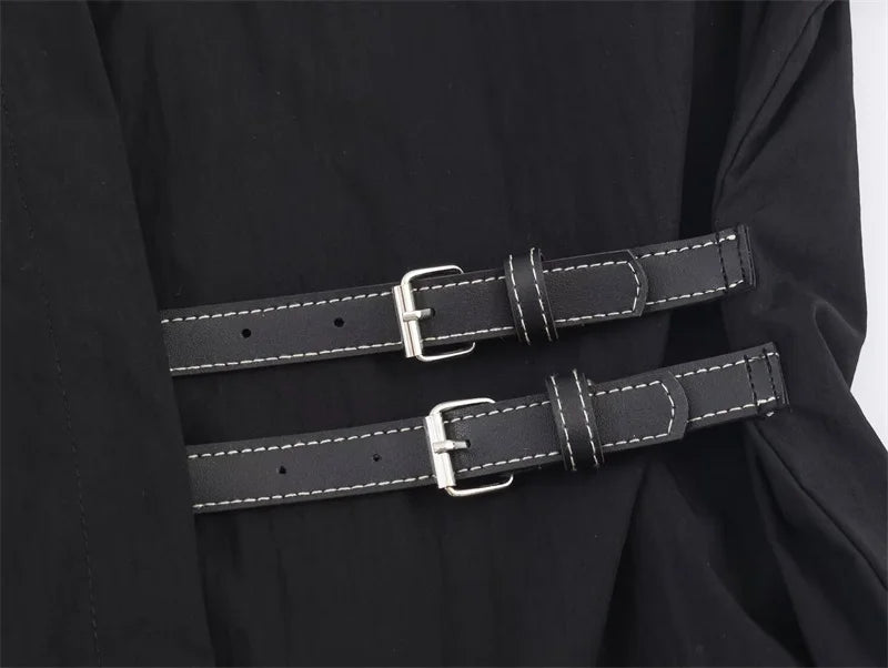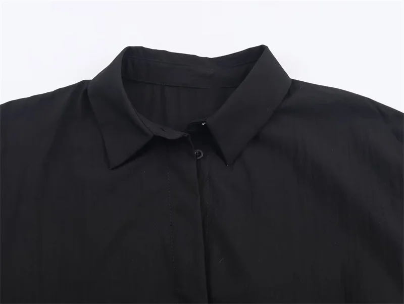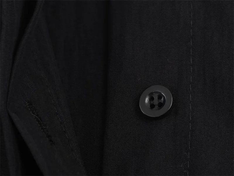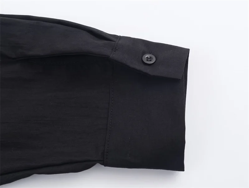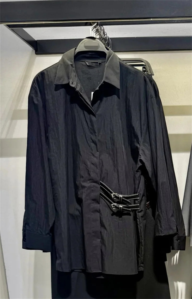 2025 Womens Loose Fit Long Sleeve Shirt Unique Niche Design Non Symmetric Black Top