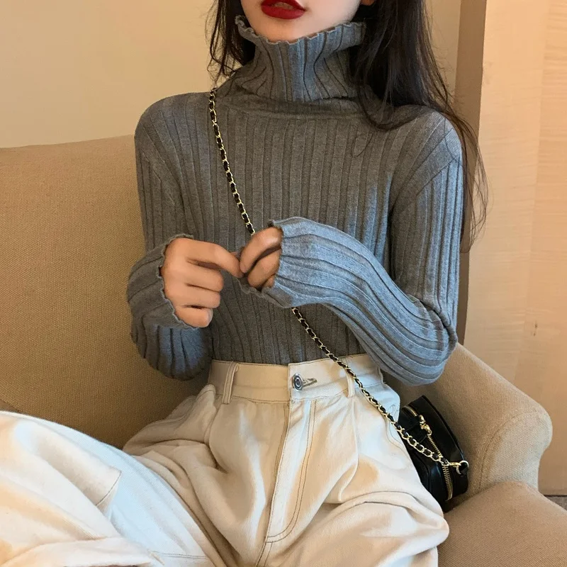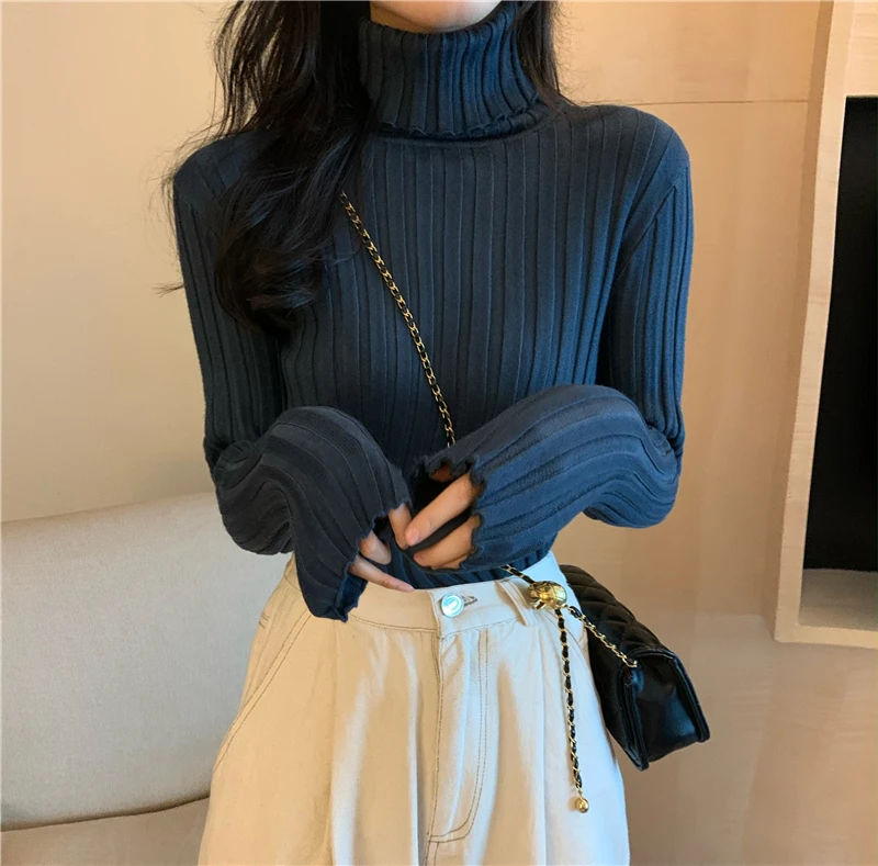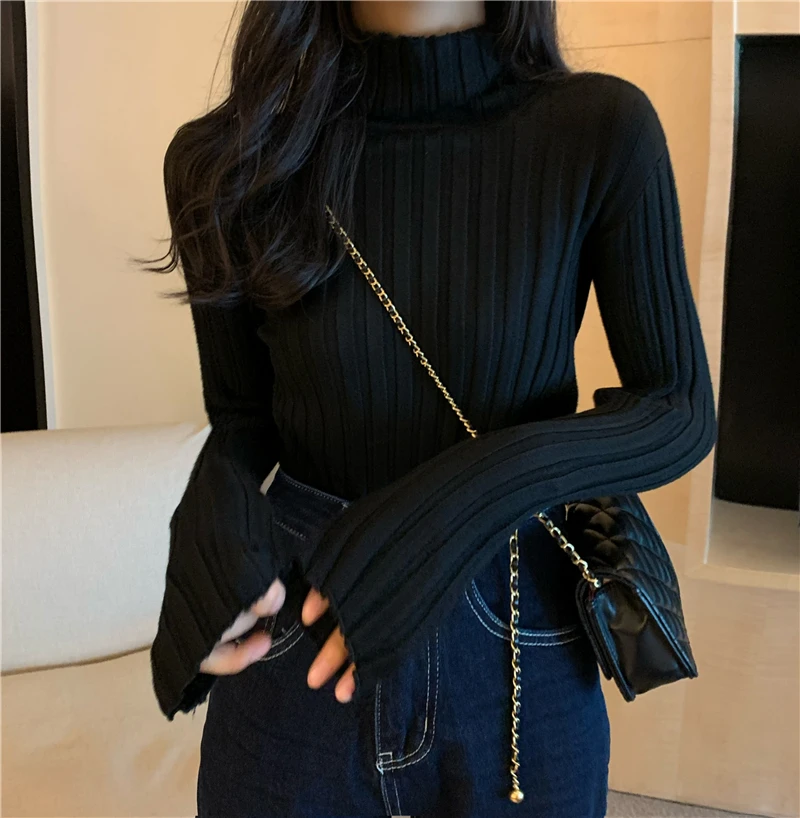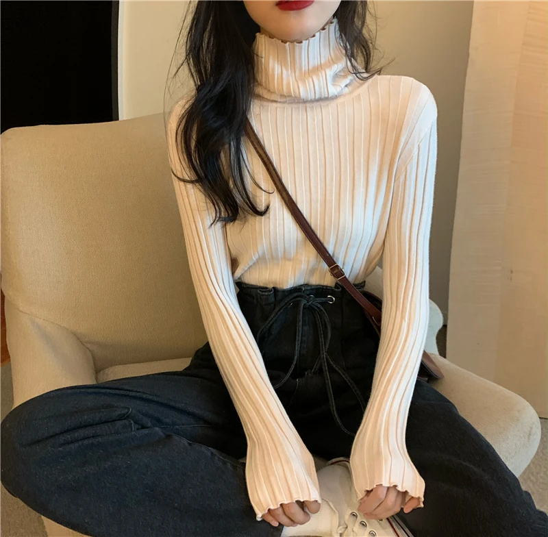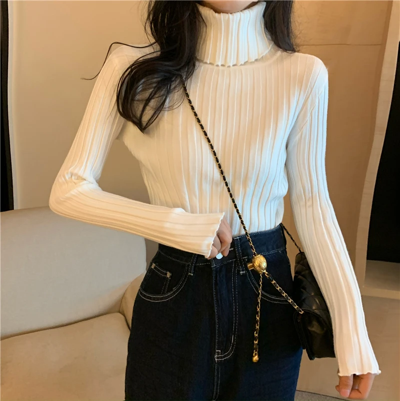Womens Regular Style Black White Turtleneck Winter Sweaters