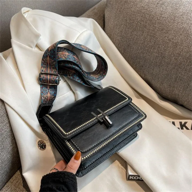 Crafted from premium PU leather, this elegant Mini Femme Messenger bag combines timeless vintage sophistication with modern functionality. Featuring a secure buckle closure and adjustable shoulder strap (90cm), it accommodates year-round styling for any occasion. The structured satchel silhouette includes a decorative sequined flap, interior slot pockets, and compartments for organized storage. Weighing just 0.4kg with moderate rigidity, this versatile accessory transitions seamlessly from daytime errands to evening events, making it an essential addition to any refined wardrobe.