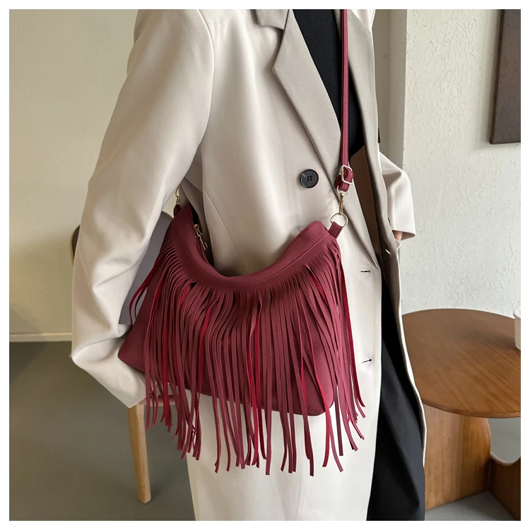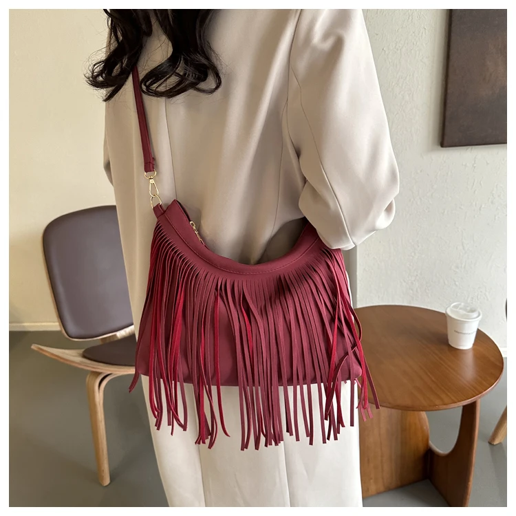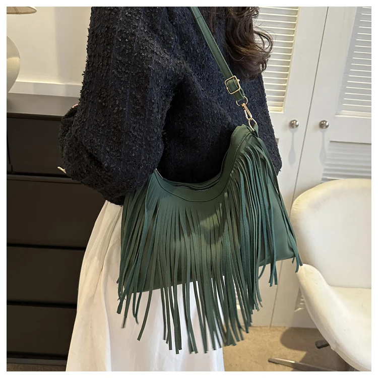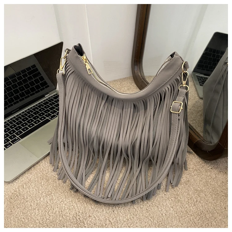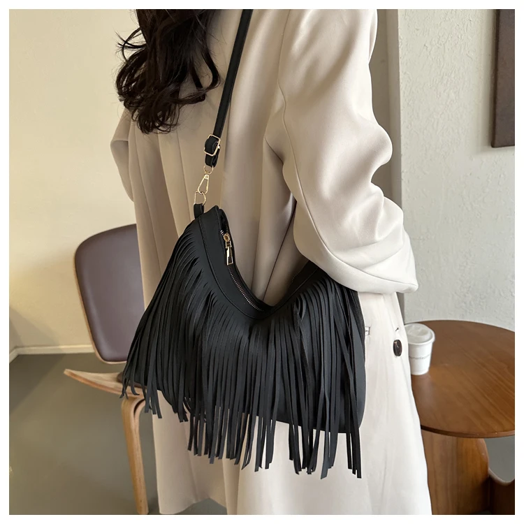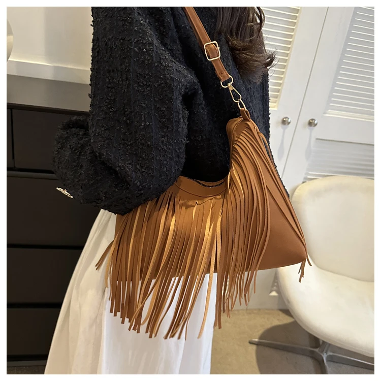 Long Fringe Tassel Bohemian Leather Bag Women Shoulder Crossbody Bags Zipper Women's Handbags Bag Gypsy Boho Bag