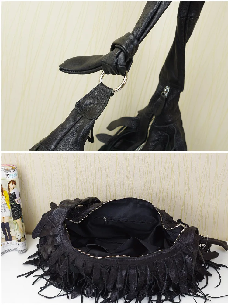 Tassel Black Leather Messenger Bag