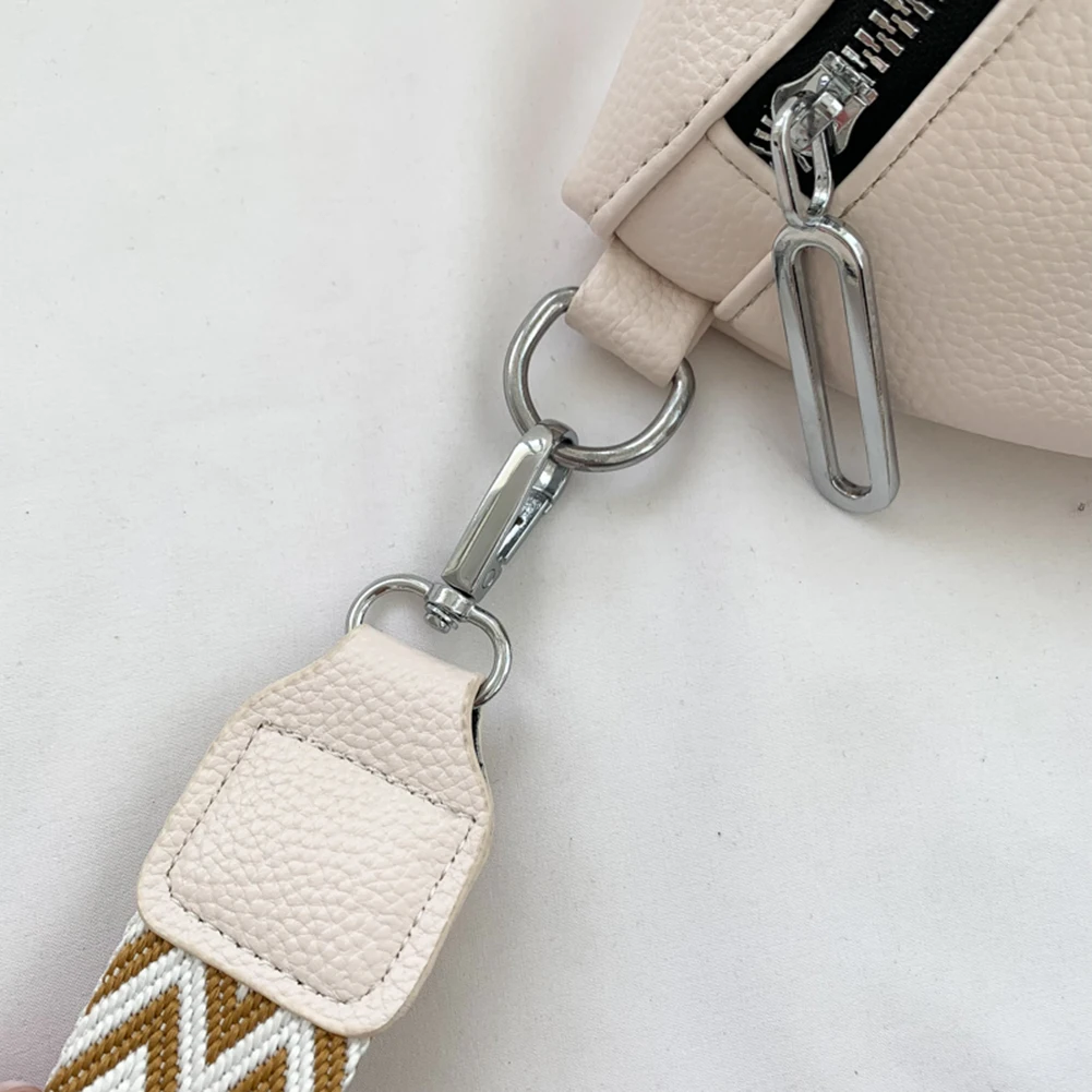 Women Messenger Bags Wide Jacquard Strap Traveling Chest Bag PU Leather Fashion Casual Solid Color Portable for Outdoor Hiking