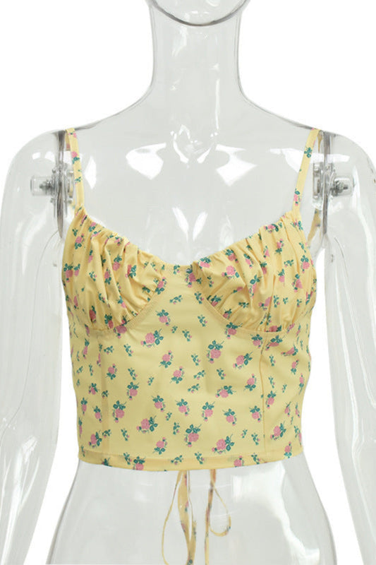 2025 Sexy Patchwork Floral Tank Top For Women Square Collar Sleeveless Lace Up Slimming Vest Summer Fashion