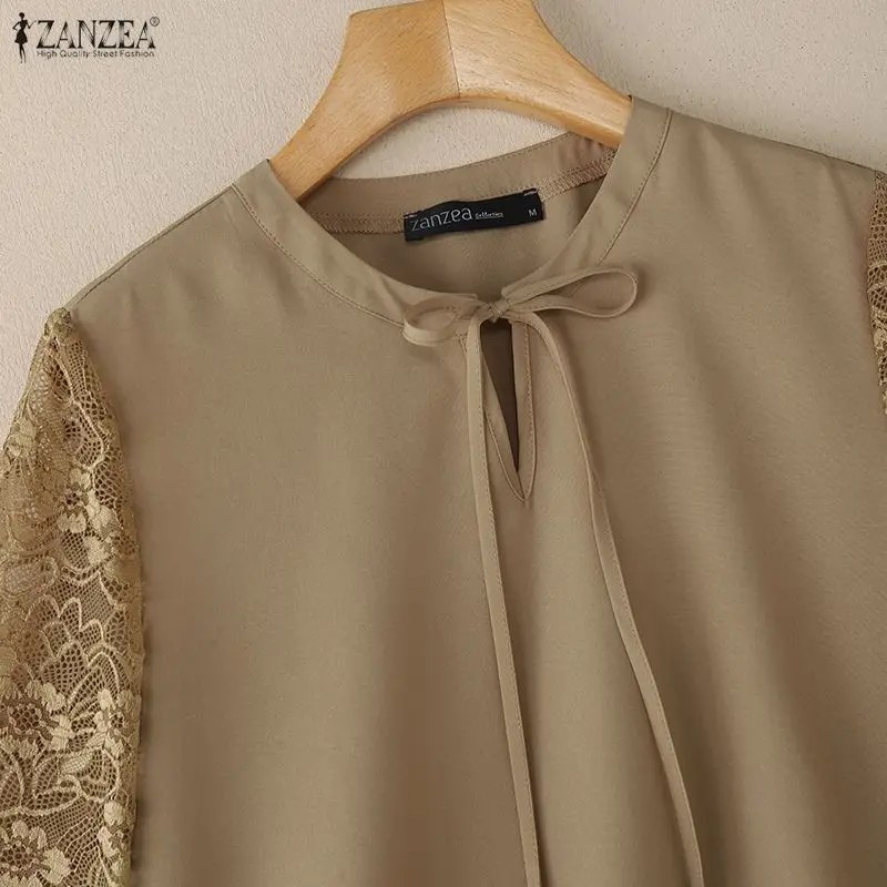 Elevate your wardrobe with this sophisticated zebra stripe bandage blouse, a versatile piece that seamlessly transitions from office to casual settings. Crafted from 100% polyester broadcloth, this elegant Korean-inspired design features delicate lace patchwork detailing and a flattering o-neck silhouette with short sleeves. The regular fit and standard thickness provide comfortable all-day wear, while the knotted closure adds a refined touch. Perfect for spring and summer occasions—whether you're heading to work, traveling, or enjoying leisure time. Available in timeless khaki, black, and navy. Note: Please consult the size chart before ordering, as measurements may vary slightly.