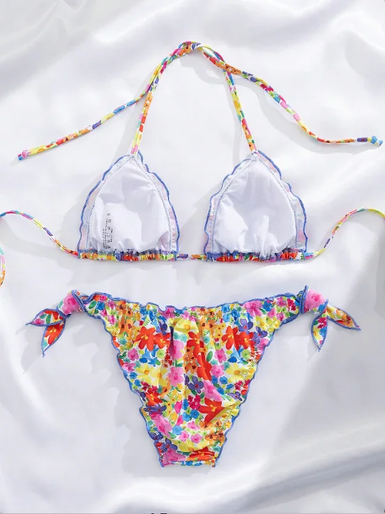 2025 Summer Pleated Bikini Set For Women Two Piece Triangle Swimsuit Halter Bathing Suit