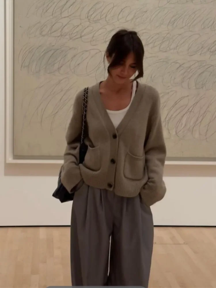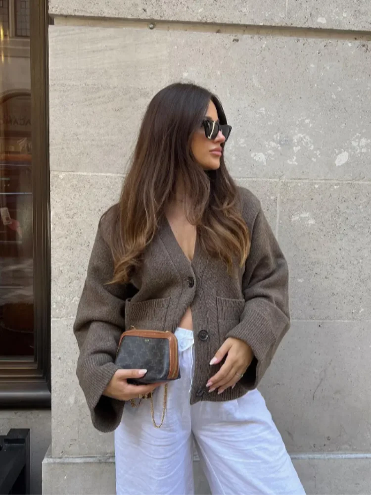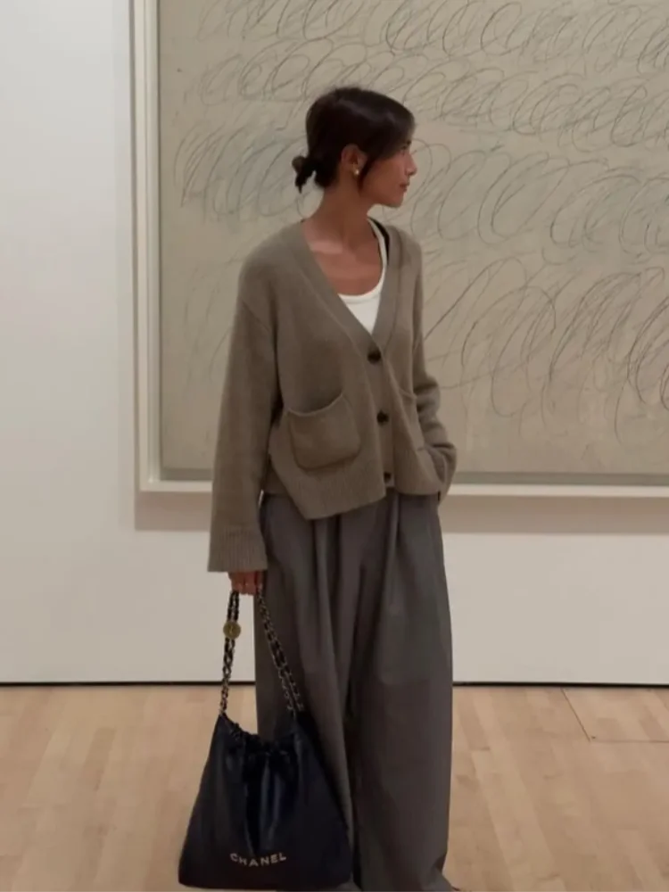 2025 Winter Women S Solid Color Cardigan Knitted Loose Fit Xxl Sweater Coat With Pockets Black