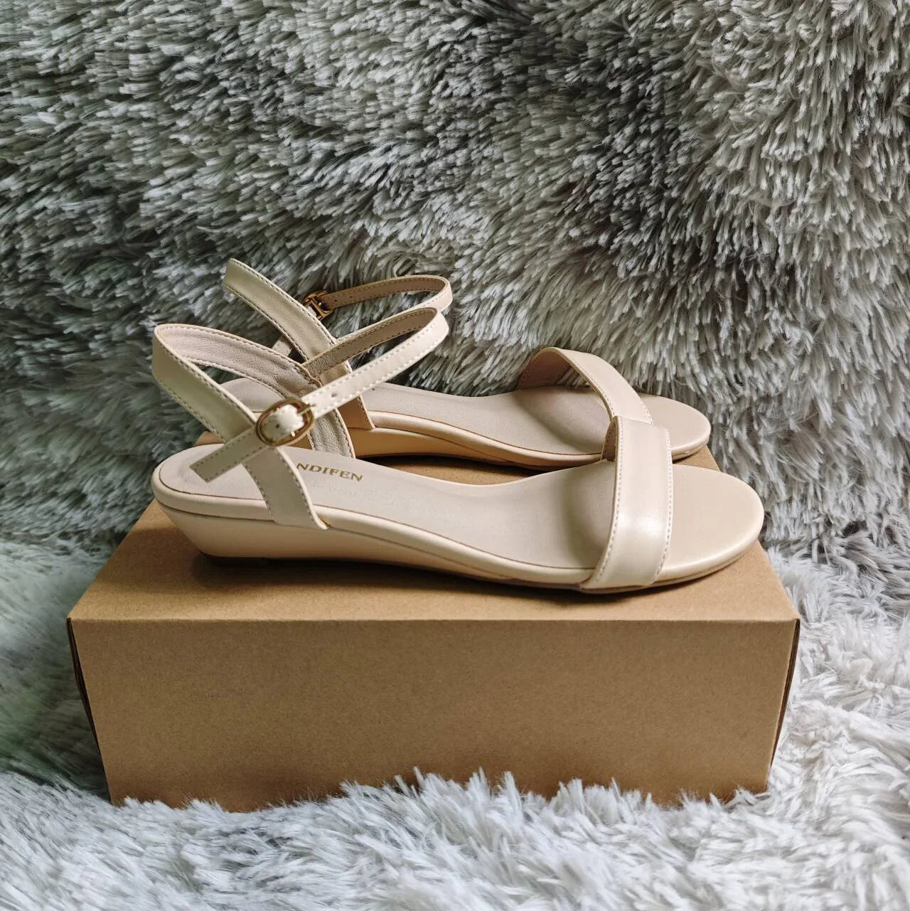 Step into summer elegance and all-day comfort with these women’s ankle-wrap wedge sandals. Featuring a soft flock upper and a 3 cm wedge heel, they provide stable elevation while maintaining wearability for long hours. The adjustable buckle strap ensures a secure, customized fit, and the ankle-wrap design adds a sophisticated touch to any outfit. Perfect for summer parties, special events, or casual occasions, these sandals combine fashion and practicality, making them a versatile addition to your event-ready wardrobe.