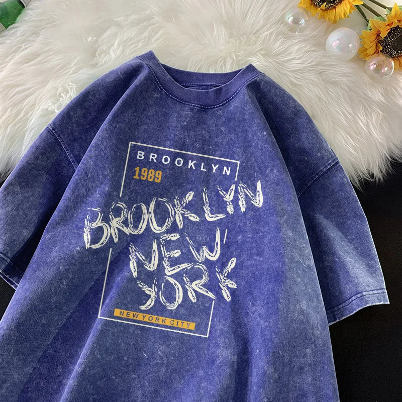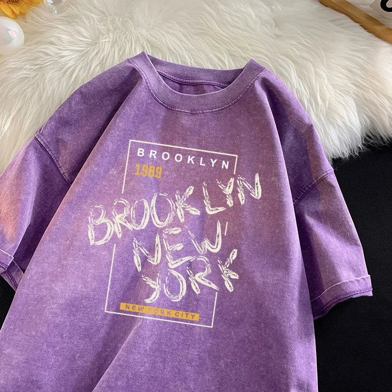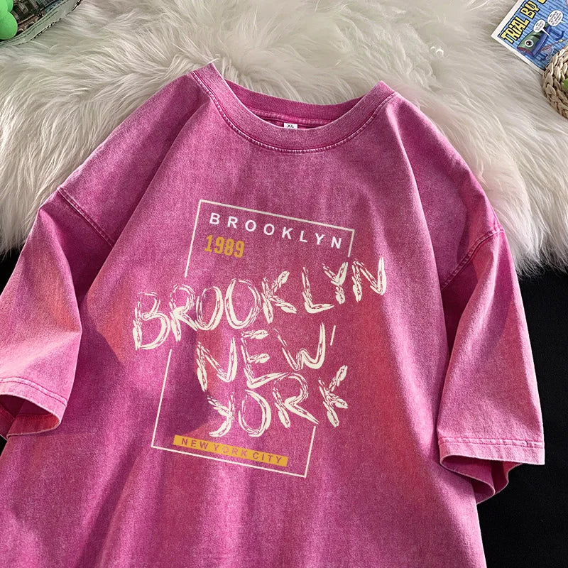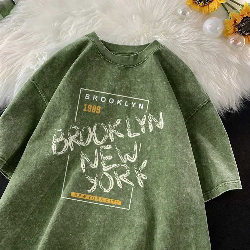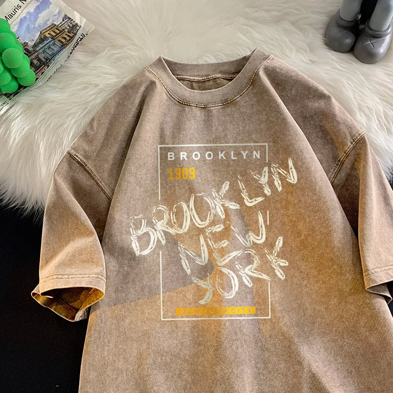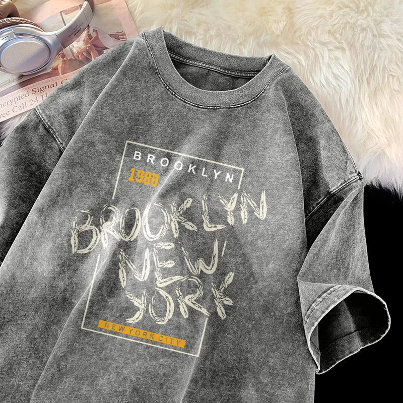 Men’s Washed Cotton T-Shirt – Vintage Letter Print Tee, Casual Summer & Street Style Outfit